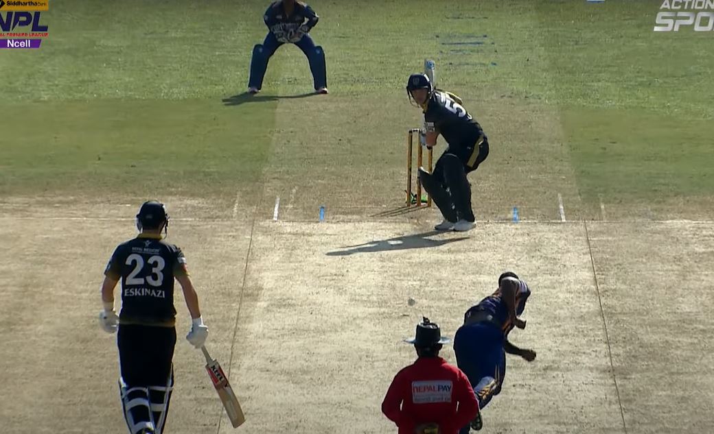 काठमाडौंका लागि पहिलो विकेटका रुपमा माइकल लेभिट रनको खाता नखोली आउट भए । लेभिट रेमन सिमोण्डसको बलमा बोल्ड आउट भए । दोस्रो विकेटका रुपमा स्टेफन स्केनाजी १३ रनमा आउट भए । स्केनाजी १६ बलको सामना गर्दै अभिषेस गौतमको बलमा आउट भए ।