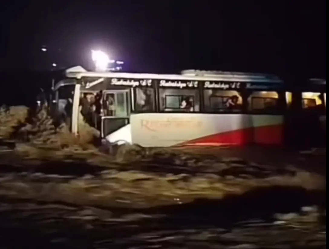 ‘नयाँ डाइभर्सनबाट आउँदै गर्दा बाढीले बस बगाएको हो’, प्रहरी निरीक्षक तिमिल्सेनाले भने– ‘तत्काल एक्साभेटर लगेर सबै यात्रुको सकुशल उद्धार गर्न सफल भयौँ।’ बसमा तीन शिशुसहित ३८ जना यात्रु रहेका थिए ।