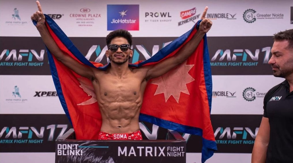 काठमाडौँ । भारतीय प्रतिस्पर्धीलाई हराउँदै नेपालका रवीन्द्र ढाँट म्याट्रिक्स फाइट नाइट (एमएफएन) बान्टमवेट च्याम्पियन बनेका छन् । शनिबार राति भारतमा भएको प्रतिस्पर्धामा रवीन्द्रले भारतका च्याम्पियन चुनरेङ कोरेनलाई पराजित गर्दै बान्टमवेट च्याम्पियन बनेका हुन् । रवीन्द्र एमएफएनको च्याम्पियन बन्ने पहिलो नेपाली फाइटर हुन् ।