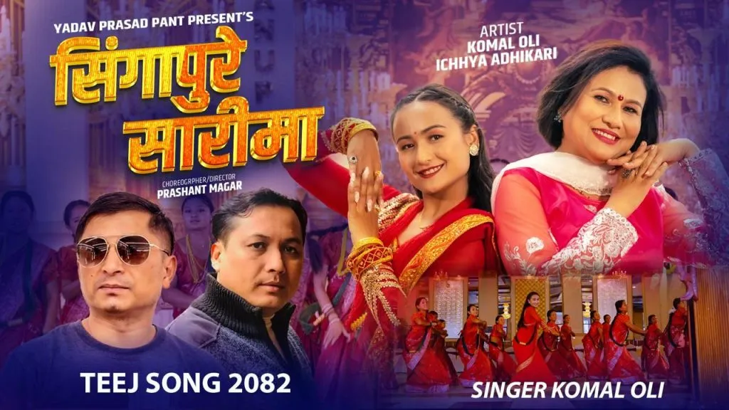चर्चित गायिका कोमल वलीको नयाँ तीज गीत “सिंगापुरे सारीमा” सार्वजनिक भएको छ । यादव प्रसाद पन्त र बसन्त योगीको शब्द रहेको गीतमा स्वर कोमल वलीको रहेको छ भने संगीत एवं एरेन्ज पुष्कर सुनुवारले गरेका छन् ।
