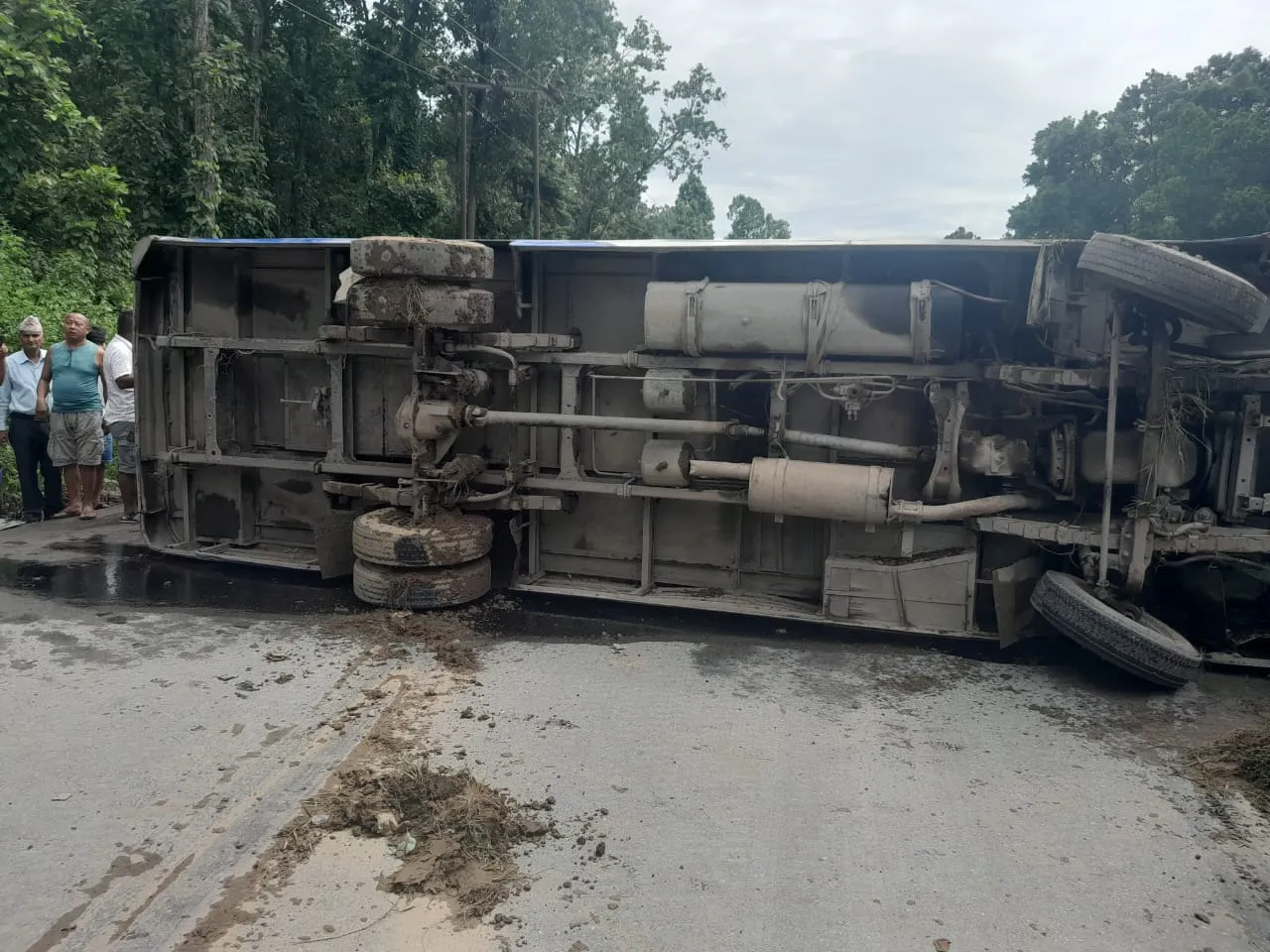 पूर्व पश्चिम राजमार्गमा डण्डा बाट नारायणगढ तर्फ जाँदै गरेको ना ४ ख ७७७६ नं. को बस अनियन्त्रित भएर बिच सडकमै पल्टिएको जिल्ला प्रहरी कार्यालयले जनाएको छ ।