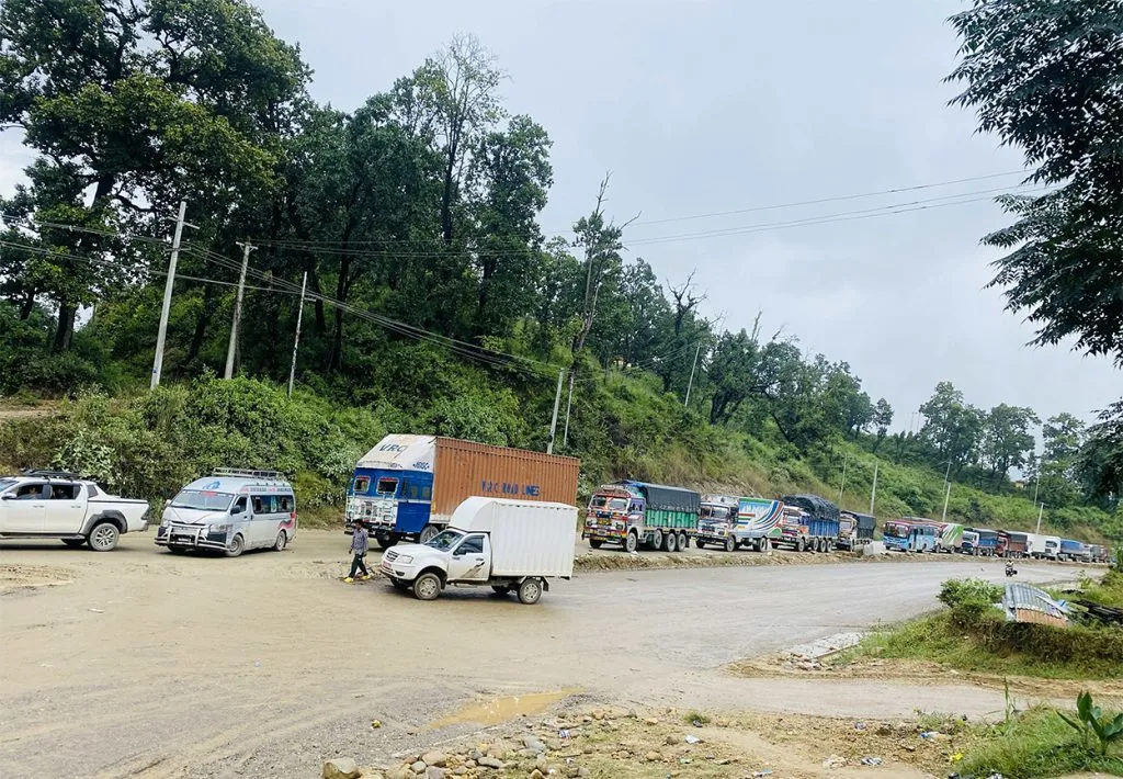 अरुणखोला, चोरमारातर्फको जंगल क्षेत्रमा सयौं सवारी साधनहरु रोकिएका छन् । त्यहाँ करिब ४०० गाडीहरुको लाइन रहेको स्थानीय बताउँछन् ।
