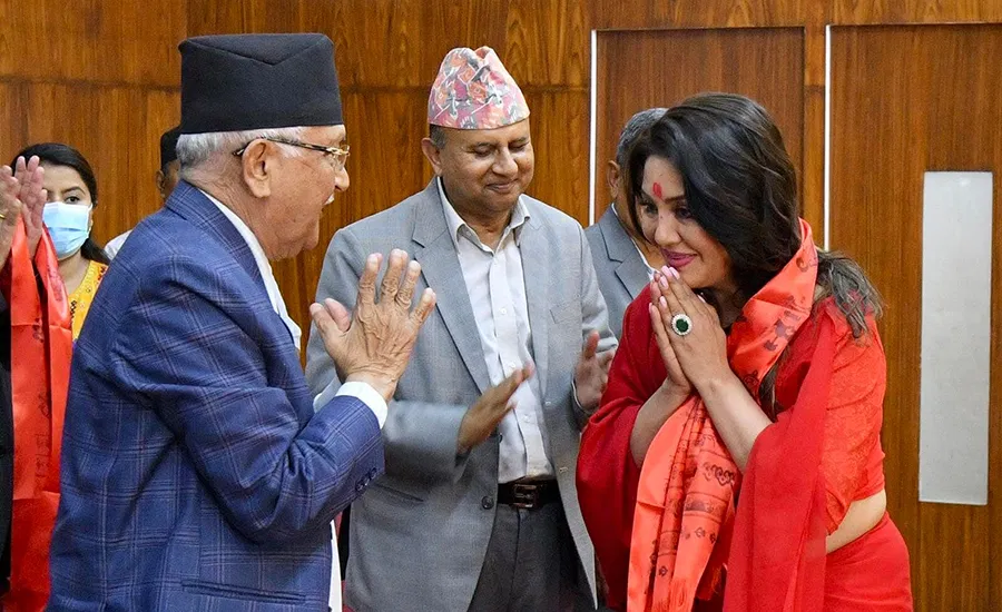 ‘चर्चित, स्थापित, प्रतिष्ठित, सुब्याख्यात कलाकार एवं राजनीतिज्ञ र केही गरौं भन्ने भावना भावनाले अत्यन्तै ओतप्रोत करिश्मा मानन्धर ज्यु’ भन्दै सम्बोधन सुरु गरेका अध्यक्ष ओलीले करिश्मा मानन्धरको पनि उच्च प्रशंसा गरे ।