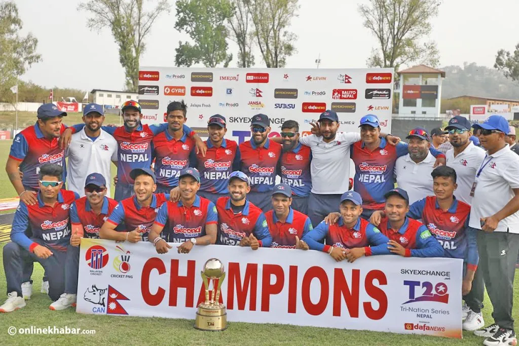 २१ चैत, काठमाडौं । दीपेन्द्र सिंह ऐरीको अलराउण्ड प्रदर्शनमा नेपालले पपुवा न्यूगिनी (पीएनजी) लाई ५० रनले पराजित गर्दै त्रिकोणात्मक टी-२० श्रृखंलाको उपाधि जितेको छ । नेपाललाई उपाधि दिलाउने क्रममा ब्याटिङमा अर्धशतक प्रहार गरेका दीपेन्द्रले बलिङमा ४ विकेट लिए ।