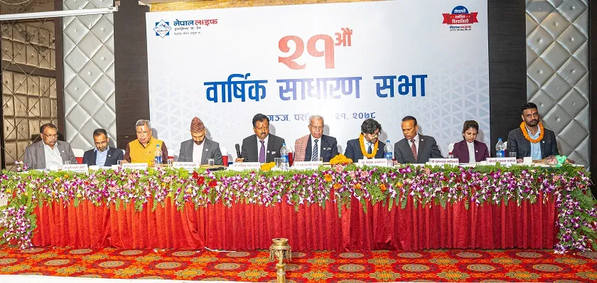 नेपाल लाइफ इन्स्योरेन्सले २१औं वार्षिक साधारणसभा सम्पन्न गरेको छ । सोमबार वीरगञ्जमा सम्पन्न साधारण सभाले शेयरधनीहरुलाई चुक्ता पूँजीको १४ प्रतिशत बोनस शेयर दिने प्रस्ताव पारित गरेको छ । यस्तै प्रति शेयर रु.०.७३६८ (कर प्रयोजनका लागि) नगद लाभांश वितरणको प्रस्ताव पनि पारित भएको छ । बोनस शेयर वितरण पश्चात् कम्पनीको चुक्ता पूँजी जीवन बीमा क्षेत्रकै सर्वाधिक रु. ८ अर्ब २० करोड ७९ लाख ६६ हजार ५४४ हुने बताइएको छ ।