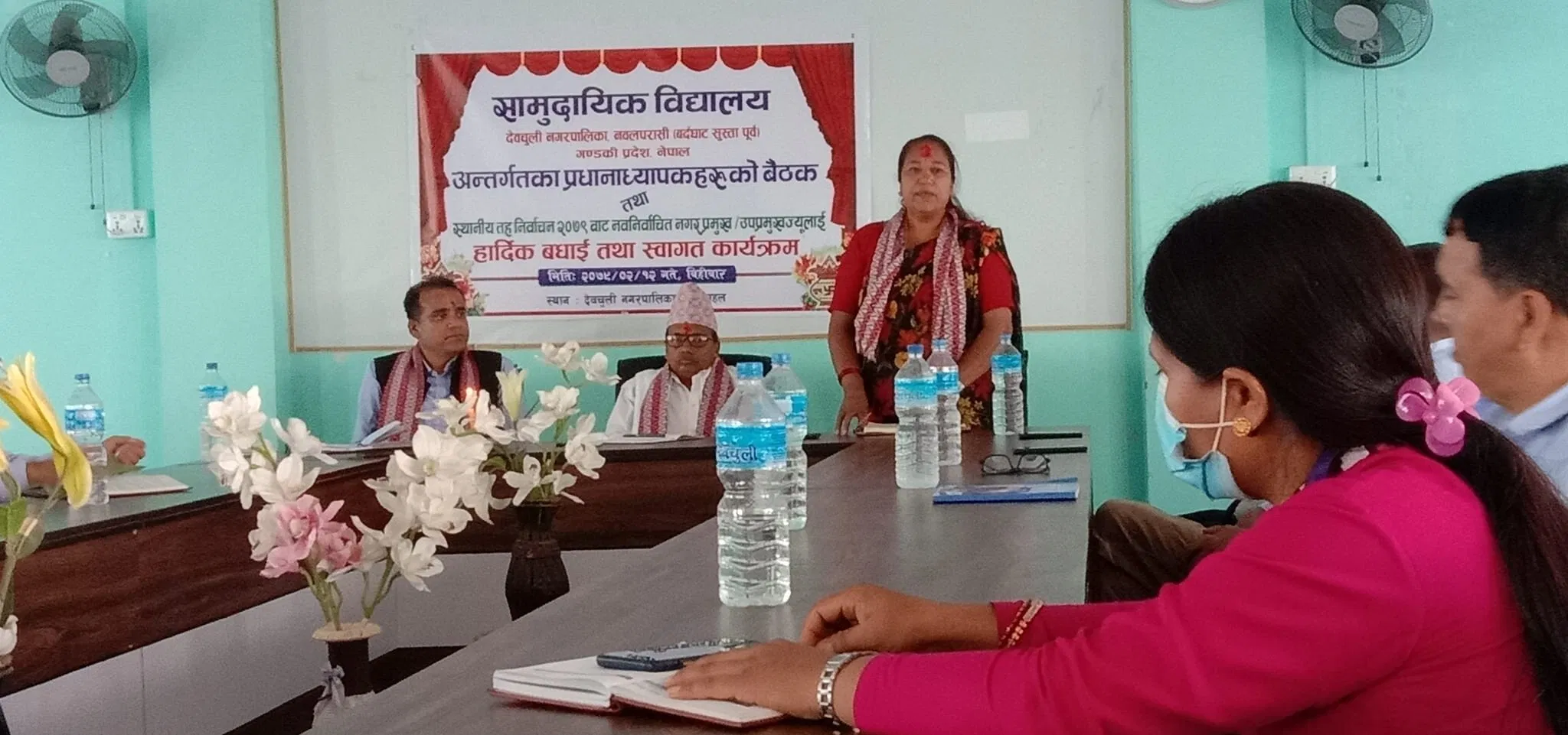 देवचुली नगरपालिकाका नवनिर्वाचित नगर प्रमुख र उप प्रमुखलाई आज एक कार्यक्रमका बीच सम्मान गरिएको छ। देवचुली भित्र रहेका सामुदायिक विधालयका प्रधानाध्यापकहरुको उपस्थितिमा शिक्षक महासंघका अध्यक्ष चन्द्र देव तिवारीको अध्यक्षतामा नगर प्रमुख हरि न्यौपाने र उप प्रमुख पार्वता तिवारीलाई सम्मान गरिएको हो।