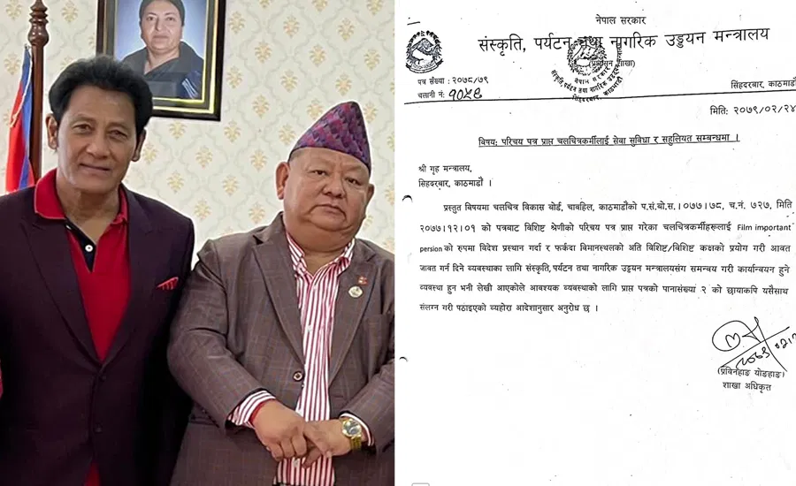 सरकारबाट विशिष्ट श्रेणीको परिचयपत्र प्राप्त गरेका चलचित्रकर्मीलाई ‘फिल्म इम्पोर्टेन्ट पर्सन’को रुपमा विदेश प्रस्थान गर्दा र फर्किंदा विमानस्थलको अति विशिष्ट वा विशिष्ट कक्षको प्रयोग गरी आवतजावत गर्न दिन भन्दै पर्यटनले गृहलाई पत्राचार गरेको हो ।
