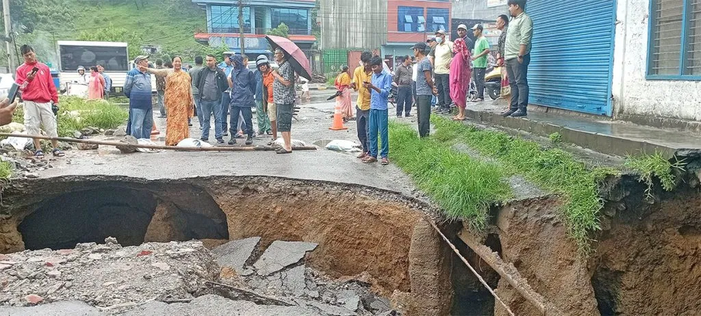 सामान्य वर्षामा समेत पोखराका विभिन्न ठाउँमा सडक भासिँदै आएको छ । जमिनभित्र चुनयुक्त माटो भएको र बर्खामा पानीको सम्पर्कमा आउँदा पग्लिएर सडक भ्वाङ पर्ने गरेको विज्ञहरुले बताउँदै आएका छन् ।