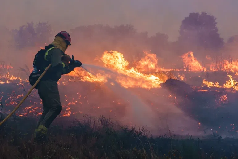 स्पेनको कास्टिला वाई लिओन, ग्यालिसिया र एक्स्ट्रेमादुरा प्रान्तहरूमा डढेलो फैलिएको छ । आगो निभाउन भूमध्य सागरमा हजारौँ अग्नि नियन्त्रकहरू र विमान तैनाथ छन् ।