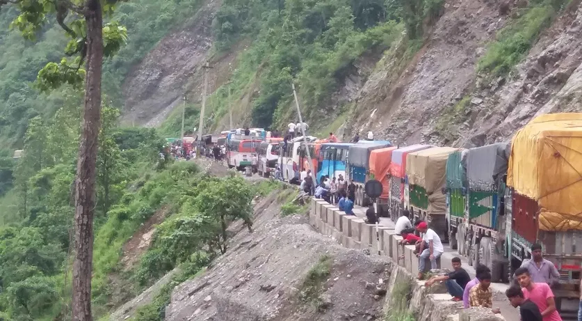पहिराका कारण सो सडकखण्ड भएर चल्ने सवारीसाधन रोकिएका छन् ।