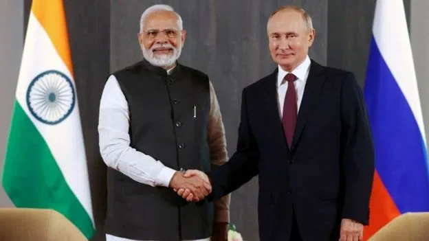 शंघाई सहयोग संगठन (एससीओ) शिखर सम्मेलनको क्रममा प्रधानमन्त्री नरेन्द्र मोदीले शुक्रबार समरकन्दमा रुसी राष्ट्रपति भ्लादिमिर पुटिनसँग भेट गरेका छन् । यस वर्षको फेब्रुअरीमा सुरु भएको युक्रेन संकटपछि प्रधानमन्त्री मोदी र राष्ट्रपति पुटिनबीचको यो पहिलो भेट थियो। यद्यपि यी दुईबीच धेरैपटक फोन वार्ता भने भइसकेको छ ।