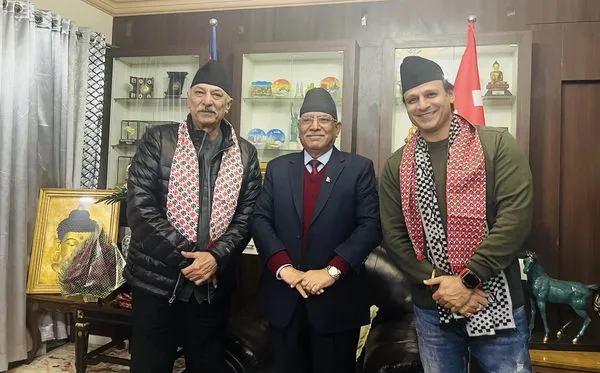 बलिउड अभिनेता विवेक ओबरोय र उनका पिता सुरेश ओबरोयले नेकपा माओवादी केन्द्रका अध्यक्ष पुष्पकमल दाहाल ‘प्रचण्ड’ लाई भेट गरेका छन् । उनीहरू बिहीबार साँझ प्रचण्डलाई भेट्न उनको निवास खुमलटार पुगेका हुन् ।
