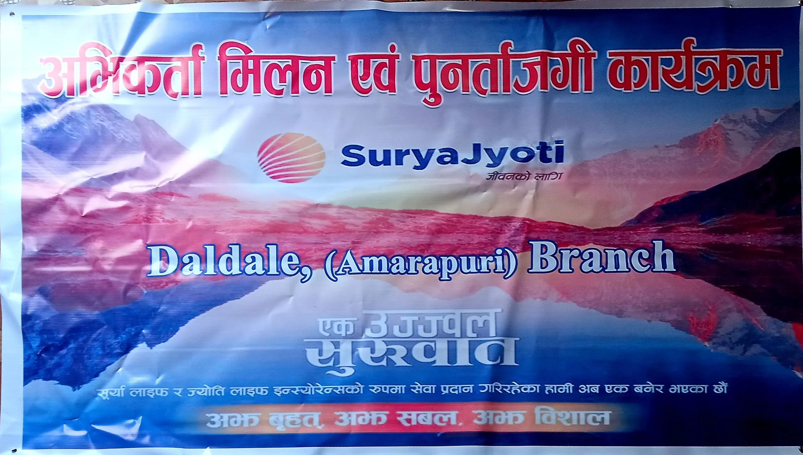 सुर्यज्याेति लाईफ इन्स्योरेन्स कम्पनिकाे दलदले (अमरापुरी) शाखामा अभिकर्ता मिलन एवं पुनर्ताजगी कार्यक्रम सम्पन्न भएको छ। कार्यक्रममा प्रमुख अतिथीको रुपमा सुर्यज्योति लाईफ ईन्स्याेरेन्स कम्पनी का नारायणी क्षेत्र अन्तर्गतका क्षेत्रीय प्रमुख ईश्वर बिकल सापकोटाकाे उपश्थिती रहेकाे थियाे ।