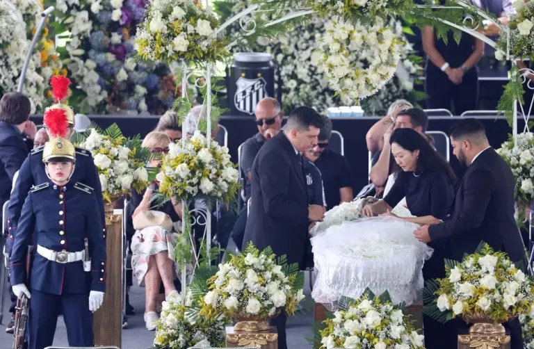 अल्बर्ट आईन्सटाइन अस्पतालबाट आतिशबाजीसहित पेलेको पार्थिव शरीरलाई श्रद्धाञ्जलिका लागि सान्तोस क्लबको भिला बिलमिरो रंगशाला पुर्याइएको थियो।