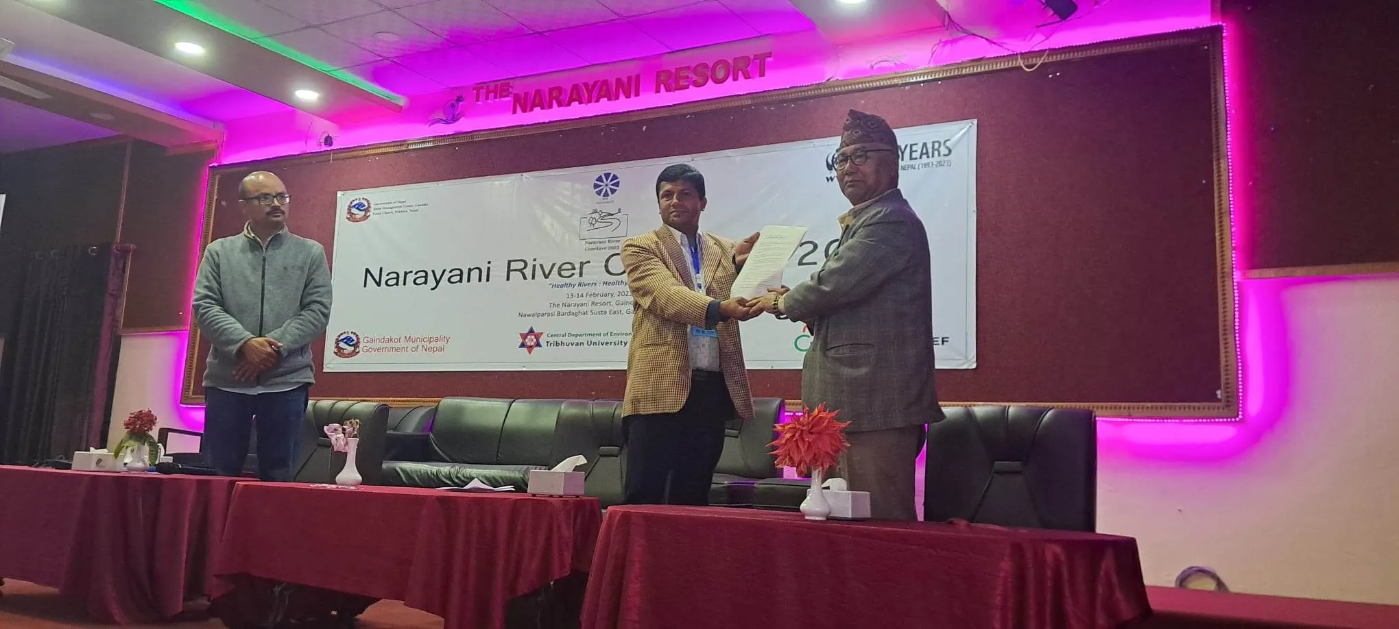 डब्लुडब्लुएफ, जलाधार संरक्षण केन्द्र गण्डकी प्रदेश, गैँडाकोट नगरपालिका, त्रिभुवन विश्वविद्यालय वातावरण विभाग, लुथरनसँगको सहकार्यमा गैरसरकारी संस्था सहमतिको ‘सिमसार क्षेत्र पुनःस्थापना र नारायणी तटीय सामूहिक प्रयास तथा कार्ययोजना’ परियोजनाको आयोजनामा सुरु भएको सम्मेलनको सोमबार गण्डकी प्रदेशका कृषि ऊर्जा तथा जलस्रोतमन्त्री वेदबहादुर गुरुङले गर्नुभएको थियो ।