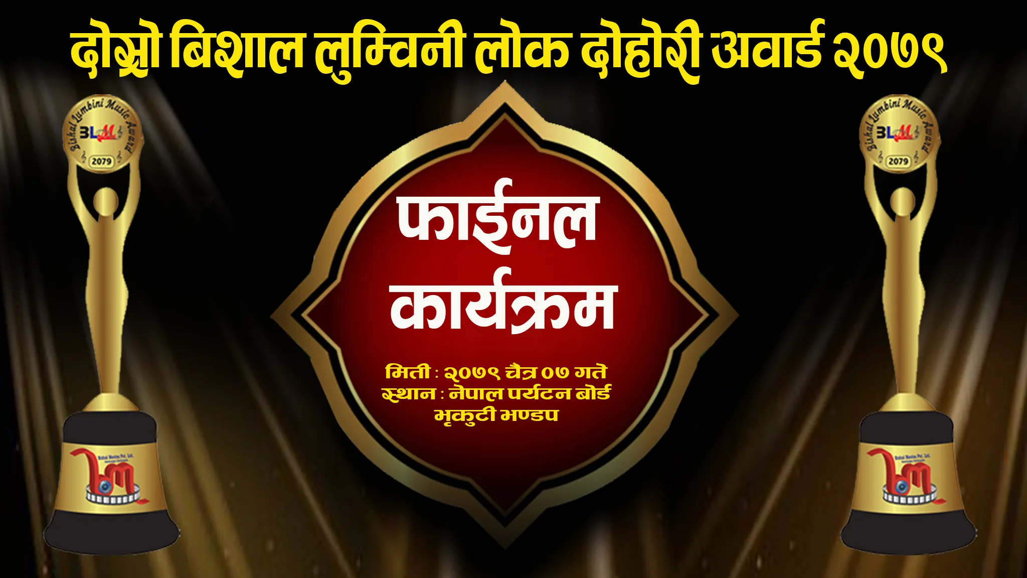 बिशाल मुभिज प्रा.लि.अनामनगर काठमाण्डौं द्धारा आयोजित दोस्रो बिशाल लुम्विनी लोक दोहोरी अवार्ड २०७९ को फाईनल कार्यक्रम यही चैत्र ७ गते नेपाल पर्यटन बोर्ड भृकुटी मण्डपमा सम्पन्न हुने भएको छ ।