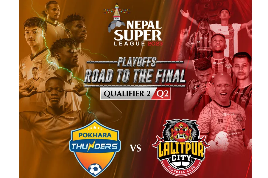 १२ पुस, काठमाडौं । नेपाल सुपर लिग (एनएसएल) २०२३ को दोस्रो क्वालिफायरमा आज पोखरा थण्डर्स र ललितपुर सिटी एफसीबीच प्रतिस्पर्धा हुँदैछ । खेल त्रिपुरेश्वरस्थित दशरथ रंगशालमा साँज साढे ५ बजे सुरु हुनेछ ।