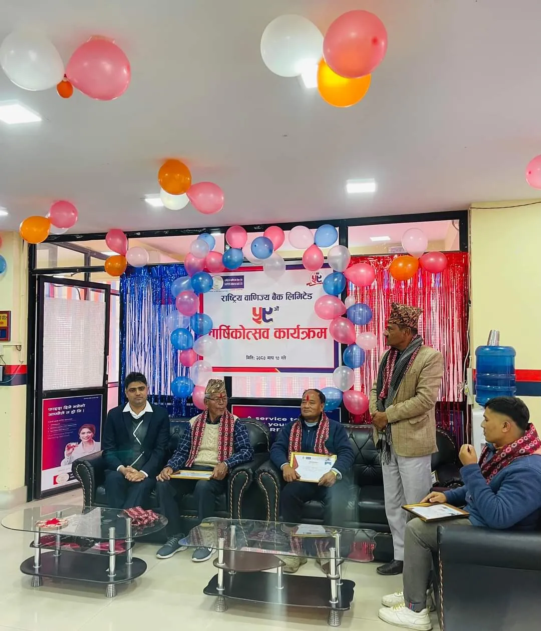 नवलपुर । राष्ट्रिय बाणिज्य बैँक टाँगीकाेट शाखाले कृषक तथा उध्धमीलाई सम्मान गरि ५९ औँ बार्षीक उत्सब सम्पन्न गरेकाे छ ।