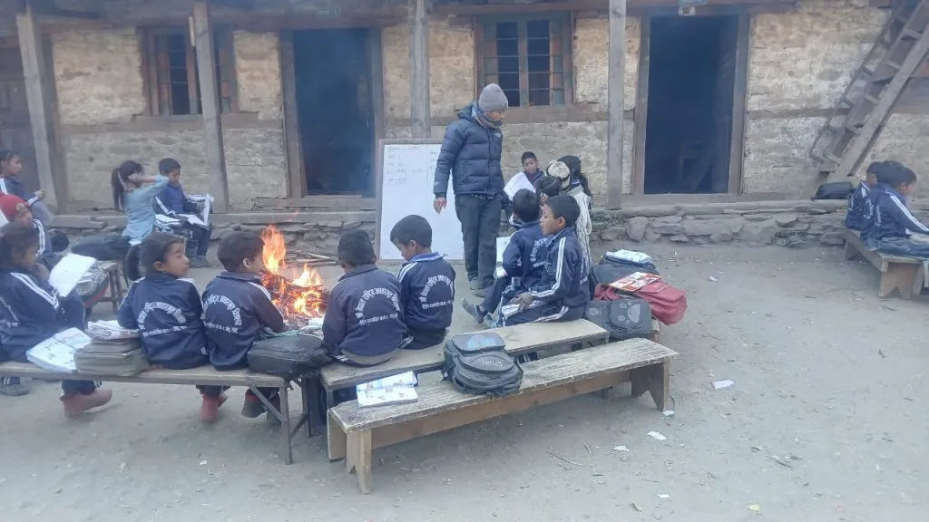 जिल्लाको पूर्वी कर्णाली भेगमा पर्ने मुगुम कार्मारोङ गाउँपालिका–९ पाँपुस्थित श्री नेपाल राष्ट्रिय आधारभूत विद्यालयमा अत्यधिक चिसोका कारण पठनपाठन प्रभावित भएको छ । हिमाली क्षेत्रमा चिसो बढ्दै गएपछि विद्यार्थीहरू कक्षाकोठामा बस्न नसकी खुला चउरमै आगो बालेर ताप्दै अध्ययन गर्न बाध्य भएका छन् । कक्षाकोठामा आगो बाल्दा दुर्घटनाको जोखिम हुने भएकाले खुला स्थानमा धुनी जगाएर त्यसकै तातोमा विद्यार्थी पढाउने गरिएको विद्यालयले जनाएको छ । भौगोलिक अवस्थाका कारण विद्यालयमा बिहान करिब ८ बजे मात्र घाम लाग्ने र दिउँसो करिब १ बजेपछि घाम पूरै अस्ताउँछ । घाम अस्ताएसँगै कडा चिसो बढ्ने गरेको विद्यालय प्रशासनले जनाएको छ । यस्तो अवस्थामा कक्षाकोठामा अध्ययन–अध्यापन कठिन भएपछि आगो बालेर कक्षा सञ्चालन गर्नुपर्ने बाध्यता सिर्जना भएको छ ।