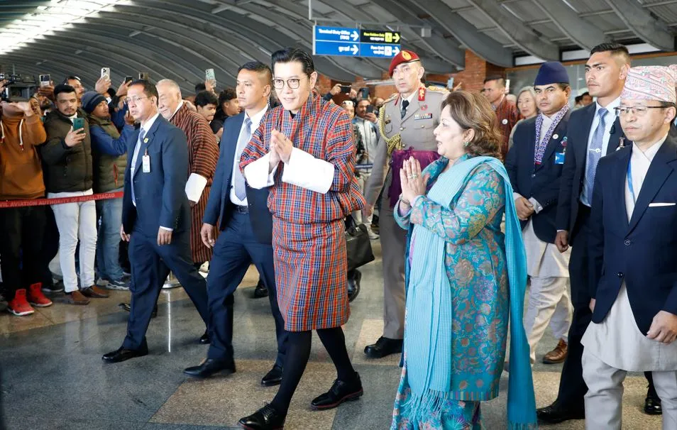 भूटानी नरेश काठमाडौं आए, परराष्ट्रमन्त्री राणाले गरिन् स्वागत