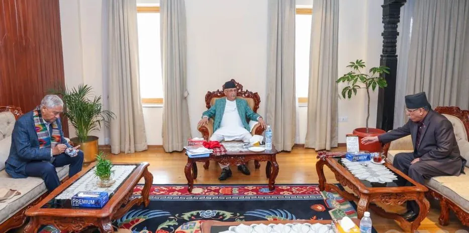 संवैधानिक परिषद् बैठकको तयारीबारे प्रधानमन्त्री ओली, देउवा र प्रचण्डबीच छलफल